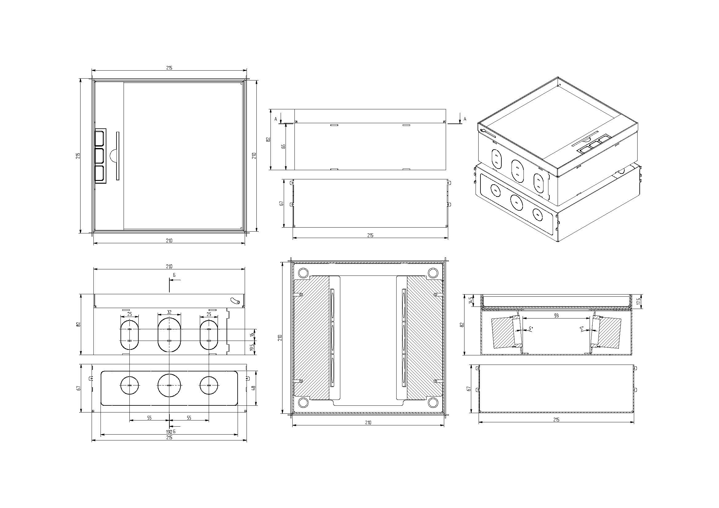 - Металлическая монтажная коробка: 215 х 215 х 67 мм