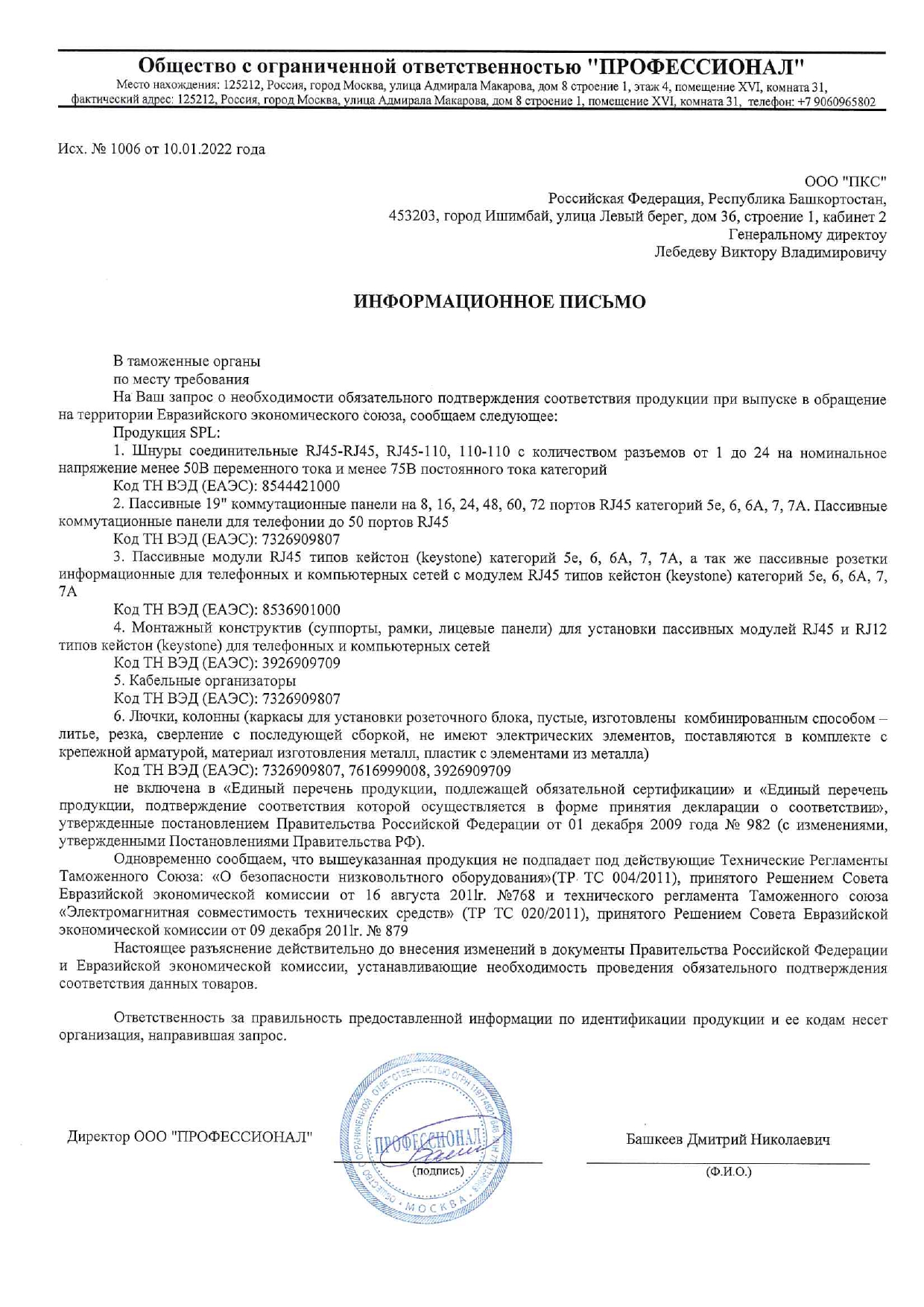 - Соответствует требованиям категории 6 стандарта ISO/IEC 11801-1-2017