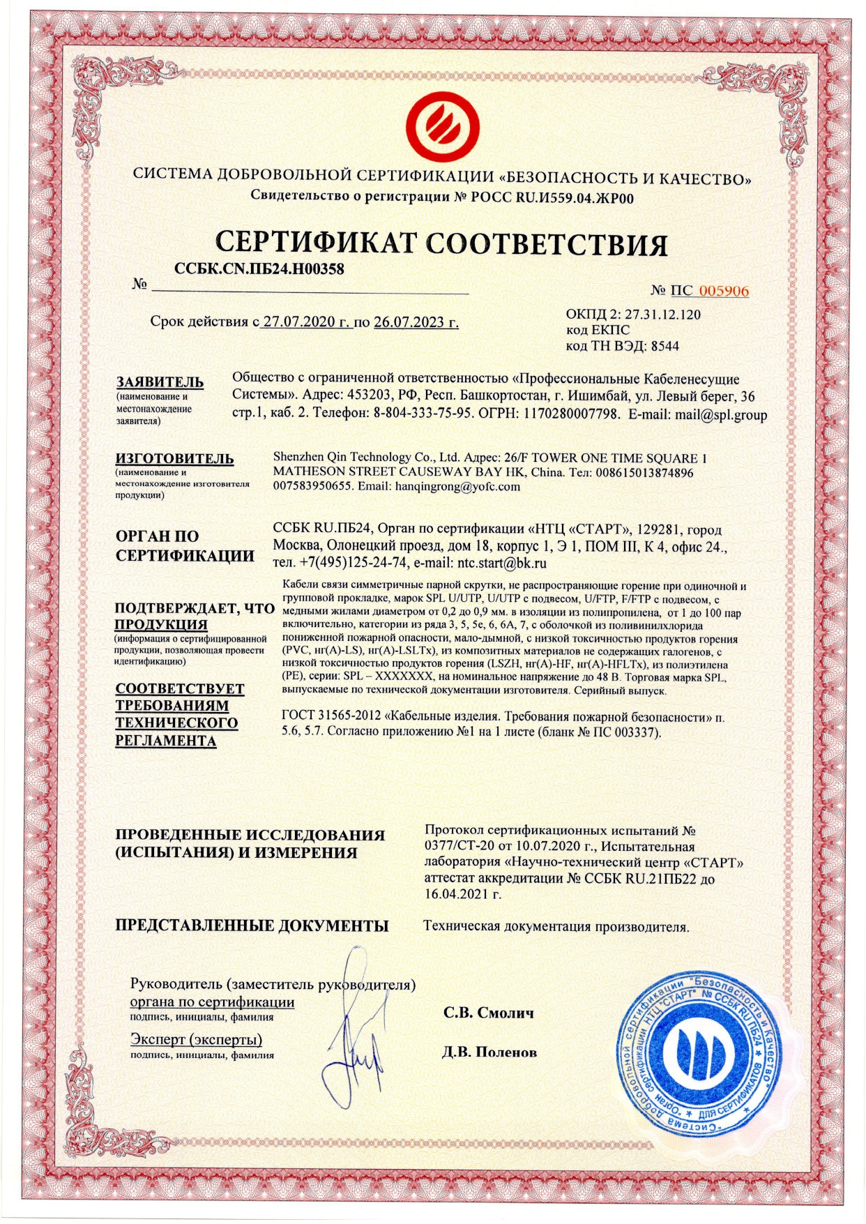 - Класс пожарной безопасности: нг (А)-HFLTX, ограничивает распространение огня и выделение токсичных газов